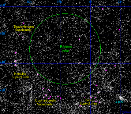 Однако это никак не объясняет существование войда Волопаса. С рождения Вселенной прошло недостаточно времени для того, чтобы гравитационные силы «очистили» пространство такого масштаба.