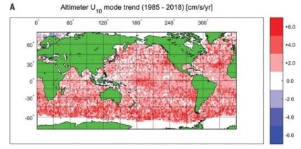 Скорость ветра в Южном океане и к югу от экватора каждый год растет примерно на 0,0254 метра в секунду. Это самый большой показатель среди всех исследованных районов. В Северной Атлантике изменения оказались вдвое меньше. Ситуация с волнами менее однозначная. Авторы заметили увеличение высоты волн в некоторых участках, в частности в Южном океане, на 0,3 сантиметра в год. В то же время в северной части Тихого океана высота, наоборот, снижалась примерно на 0,5 сантиметра в год.
