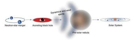 Имре Бартос (Imre Bartos) из Университета Флориды и Шабольч Марка (Szabolcs Marka) из Колумбийского университета показали, что содержание в Солнечной системе некоторых тяжелых элементов указывает на то, что колыбелью ее стало облако, созданное слиянием нейтронных звезд.