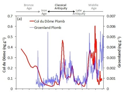 Эти пики совпали с предыдущими данными, полученными при изучении ледников Гренландии, однако, поскольку Альпы расположены куда ближе к источникам загрязнения, следы в них выражены четче и заметнее. В самом деле, в эпоху Древнего Рима по всей Европе активно разрабатывались доступные ресурсы олова и серебра. Серебро извлекали из богатой свинцом руды, переплавляя ее при высоких температурах, что и приводило к поступлению свинца в атмосферу.