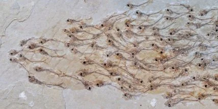 Уникальный отпечаток зафиксировал в камне сотни мелких рыб из стаи, жившей более 50 миллионов лет назад.