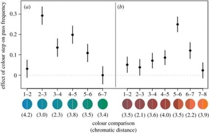 Тест прошел успешно и показал, что зебровые амадины также могут воспринимать холодные оттенки и разграничивать их. Однако в обоих исследованиях птицы лучше различали определенные цветовые пары, чем другие. На основе этих данных авторы показали, где происходит основной переход между красным и оранжевым цветом, а также между синим и зеленым. У последнего диапазона граница оказалась более размытой. Это отчасти совпадает и с человеческим восприятием, так как, по словам исследователей, во многих языках слов для оттенков синего и зеленого меньше, чем для оттенков красного и оранжевого. Так ли это в действительности и в чем причина, сейчас сказать сложно, но авторы предполагают, что для хордовых млекопитающих диапазон теплых оттенков важнее, так как он соотносится с цветами плодов растений.