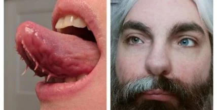Это не часть подготовки к Хэллоуину, а синдром бахромчатого языка. Наросты под языком, похожие на щупальца, не причиняют дискомфорта, но могут застревать между зубами.