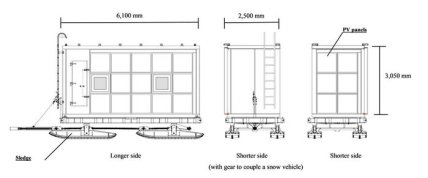 Согласно проекту, мобильная передвижная станция для изучения Антарктиды будет представлять собой кубическую конструкцию, состоящую из блоком размером три на шесть метров. Они будут устанавливаться на сани, которые можно передвигать с помощью гусеничного вездехода.
