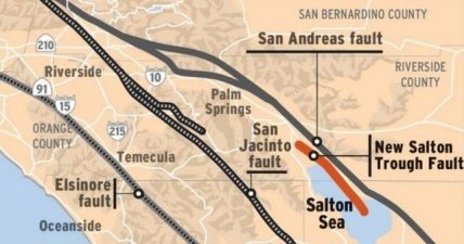 В течение многих лет сейсмологи сообщали , что знаменитый разлом Сан-Андреас в Калифорнии уже давно "созрел" для крупного землетрясения магнитудой 8 или выше по шкале Рихтера. Однако, недавно обнаружилась причина, почему оно до сих пор еще не случилось. Был обнаружен второй разлом длиной 56 километров, который идет параллельно разлому Сан-Андреас под озером Салтон. Именно он может "сдерживать" землетрясение. Его открытие вызвало полную переоценку сейсмической опасности для южного района штата, в частности, для Лос-Анджелеса, Сан-Диего и Сан-Бердардино. Однако, если землетрясение все же случится, то оно будет намного более разрушительным из-за Салтонского разлома.