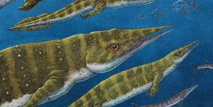 Крупная рептилия, жившая примерно 200 миллионов лет назад, относится к талаттозаврам.