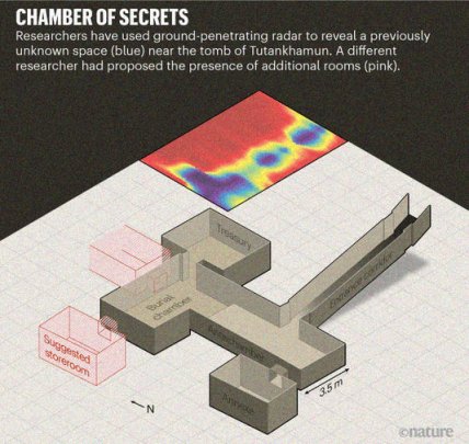 Группа исследователей под руководством бывшего главы министерства по делам древностей Египта Мамдоха Элдамати использовала георадар (GPR) для сканирования территории вокруг гробницы Тутанхамона. Согласно сделанному заявлению, им удалось идентифицировать прежде неизвестное коридорное пространство в нескольких метрах от погребальной комнаты. Об их открытии ранее в феврале было доложено министерству по делам древностей.