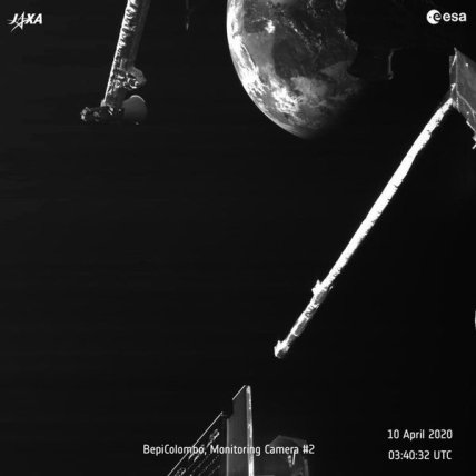 Перед тем как покинуть окрестности Земли, BepiColombo отослал черно-белые снимки родной планеты. У космического корабля есть три камеры типа GoPro.