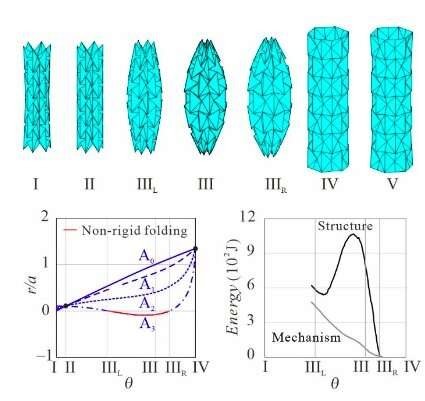 "Используя этот подход, мы впервые представили переход механизм-структура-механизм во время складывания трубчатой водяной бомбы и объяснили резкое изменение ее структурной жесткости во время переходов. Что еще более важно, теоретическая модель, которую мы разработали, позволила нам запрограммировать поведение складывания оригами для моделирования водяной бомбы" - Китайские ученые.