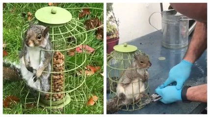 Курьезным случаем закончится для жителей английского Суррея встреча с лесной белкой. Так, жителям Банстеда пришлось вызывать спасателей, чтобы достать зверька… из кормушки с орехами.