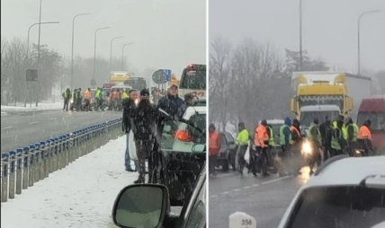 Одна из акций произошла на развязке в восточной части Перемышля, где проходит дорога №28, ведущая к Медике. Всего там собралось около 30 человек, которые время от времени начали ходить толпой по пешеходному переходу, чем блокировали движение транспортных средств.