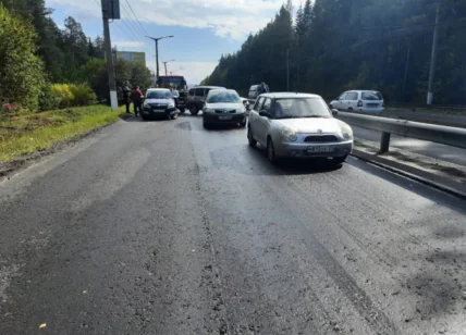 Во вторник, 14 сентября, в Златоусте Челябинской области России столкнулись сразу 19 автомобилей, — по словам водителей, дорога была покрыта битумом.