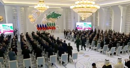 Ошибочка вышла - на инаугурации Кадырова показали карту с новыми морями и украинским Крымом