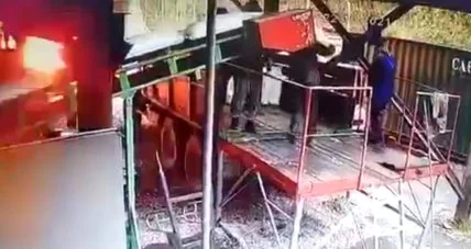 С видео не совсем понятно, почему произошел взрыв, однако заметно, что воспламенение привело к цепной реакции. Огонь быстро добрался до людей, которые находились возле разгрузочного элеватора. Находившиеся там люди пытались убраться подальше от взрывающихся мешков с порохом, однако огонь их настиг слишком быстро.