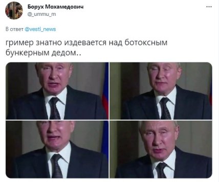 А еще один пользователь под ником Борух Мохамедович написал, что "гример знатно издевается над ботоксным бункерным дедом..".
