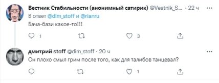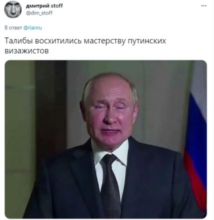 "Талибы восхитились мастерству путинских визажистов", — написал Дмитрий Stoff, разместив скрин с видео выступления Путина.