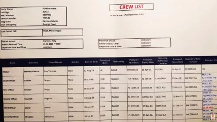 Всего на яхте, согласно списку экипажа, полученному расследователями, работают 23 человека: капитан судна Гай Беннетт-Пирс — гражданин Великобритании, все остальные — граждане России. Используя паспортные данные членов экипажа и утекшие данные авиаперелетов, участники расследования выяснили, что люди, работающие на судне, летают в Италию "как на вахту".