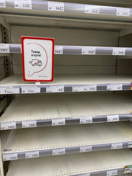 Факт из россии: полки в супермаркетах начинают быстро пустеть (фото)