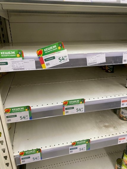 "Сходил за покупками в "Ашан" — докладываю. Сахара по-прежнему нет вообще, продавцы разводят руками. Пустые полки с томатной пастой, компотной смесью и фасолью", — опубликовал блогер сообщение друга.