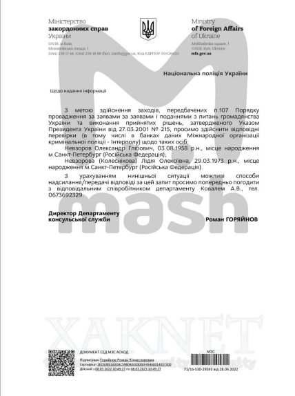 Позже советник главы МВД Украины Антон Геращенко в своем Телеграмм-канале подтвердил информацию о том, что Александру Невзорову и его супруге Лидии Невзоровой якобы предоставлении украинское гражданство. Согласно его данным, президент Украины Владимир Зеленский уже подписал соответствующий указ.