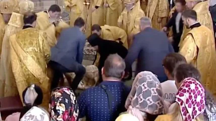 Утром 25 июня патриарх российской церкви кирилл во время богослужения поскользнулся на мраморном полу и упал на спину.