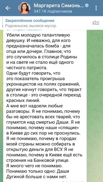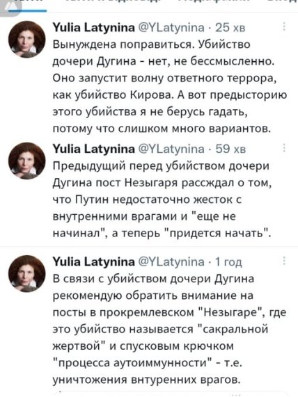 Впрочем, позже она исправила себя и намекнула на то, какие мотивы были в "устранении" дочери Дугина.