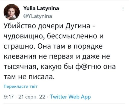 После смерти дочери российского пропагандиста Александра Дугина Дарьи Платоновой, общественные деятели россии дружно начали скорбеть. При том, жалобные посты обнародовали не только другие пропагандисты, но и те россияне, которые позиционируют себя как "либералы". Своей реакцией они поделились в соцсетях.