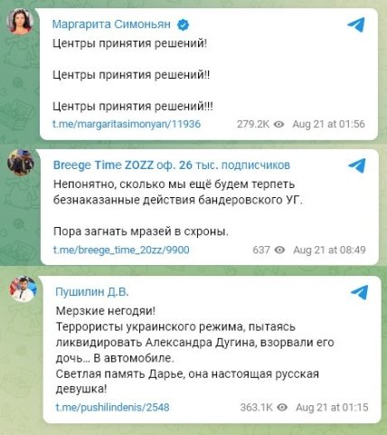 Как сообщалось ранее, автомобиль, в котором находилась женщина был взорван вечером 20 августа. Там должен был находиться и сам Дугин, но по стечению обстоятельств, он находился в другой машине. Пропагандисты уже начали обвинять Украину в случившемся, впрочем, Киев свою причастность отвергает.