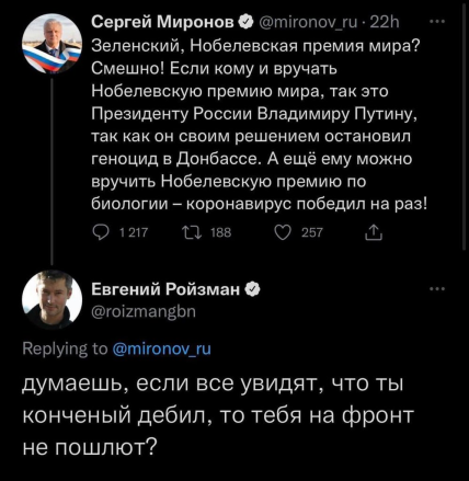 Бывшего мэра, благотворителя, коллекционера икон и основателя фонда "Город без наркотиков" Евгения Ройзмана обвиняют по статье о дискредитации российской армии. Ройзман с самого начала войны в Украине резко критиковал вторжение российских войск и публично, порой довольно грубо полемизировал с кремлевскими функционерами и пропагандистами в соцсетях. Он уже дважды был оштрафован за "дискредитацию вооруженных сил россии" на общую сумму 150 тысяч рублей, а также на 85 тысяч рублей за неуважение к власти. Ройзман оставался последним видным российским оппозиционером, который был на свободе и при этом оставался в рф.