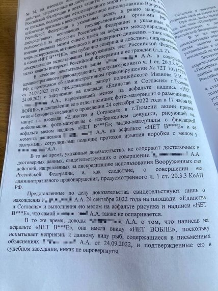 В итоге тюменский суд решил, что соответствующих доказательств подозреваемой ему достаточно и признал девушку невиновной. Мел синего цвета, которым была сделана надпись, ей вернули.
