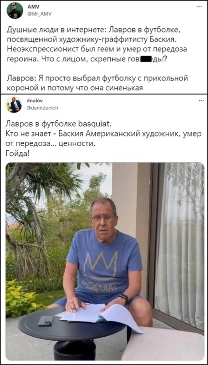 Есть подозрения, что лавров не знал, что значит принт на его одежде