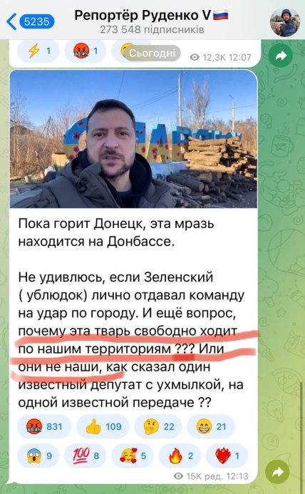 Информация об этом быстро распространилась по российским пабликам и вызвала волну негодования среди россиян. Об этом в своем Telegram-канале сообщил известный украинский журналист Денис Казанский. Он разместил скрины постов российского репортера Андрея Руденко и пропагандиста Александра Жучковского, в которых оба возмущены появлением Зеленского на Донбассе.