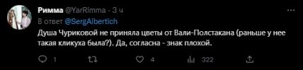 В сети распространяется видео с похорон, на котором Матвиенко роняет цветы, которые принесла к гробу Чуриковой. Многие сразу посчитали это плохим знаком, который не сулит ничего хорошего для спикера Совета Федерации.