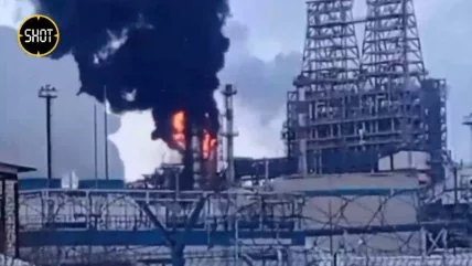 В россии горит крупный нефтеперерабатывающий завод "Лукойл" в 350 км от Москвы