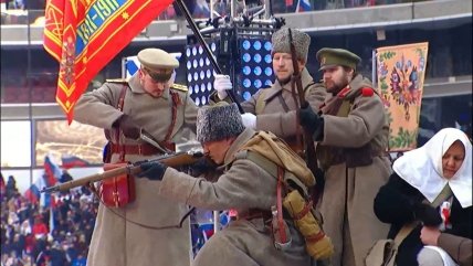 Концерт открыл российский актер и пропагандист Владимир Машков, а также выступили несколько раненых участников войны. Не обошлось и без выступления Лепса, спевшего о "Родина мать зовет". Пропагандисты устроили настоящий "бал сатаны". Они поют песни о войне, говорят о "величии" россии.