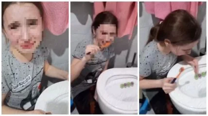 Сеть облетело видео, на котором девочка в слезах сидит над унитазом с зубной щеткой в руках и чистит ею зубы. В это время ее мать требует, чтобы дочь произносила нецензурные слова, написанные ею в интернете и после каждого из них еще раз чистили зубы водой из туалета.