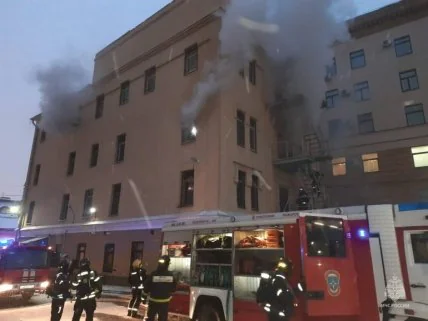 В россии продолжается сезон пожаров и на этот раз возгорание произошло в самом центре ее столицы, в здании главного управления МВД рф по Москве.