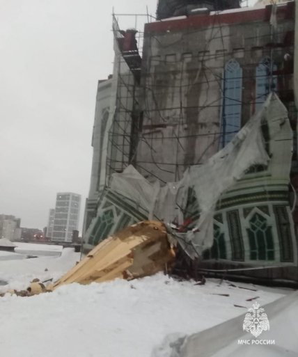 Отмечается, что само здание не пострадало, однако от удара были разрушены 70 метров строительных лесов и сорван баннер, которым прикрывали стену. Кроме того серьезные повреждения получил сам купол минарета, хотя в МЧС об этом не сообщали.