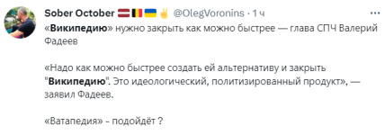 Пока российская армия пачками теряет своих военных на войне, а путин устанавливает ПВО у своей резиденции в Сочи, в россии решают по истине "важные" вопросы. К ним относится и замена "Википедии", поскольку в ней для россиян сильно "искажена" информация.