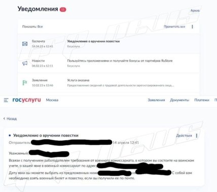 Скрином электронной повестки поделились в Telegram-канале NEXTA Live. В сети шутят, что россияне теперь будут бояться заходить на портал госуслуг, чтобы не получить там повестку.