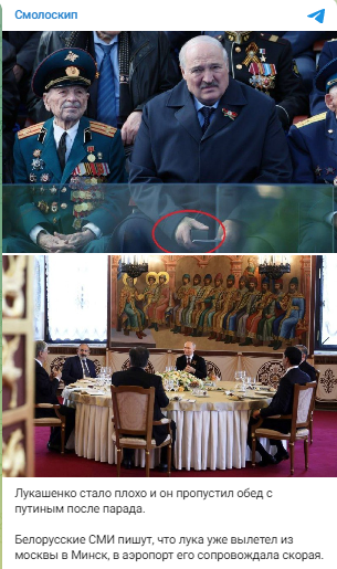 Лукашенко стало плохо на параде 9 мая, он улетел в беларусь не оставшись на праздничный обед с путиным, в этом усмотрели намек