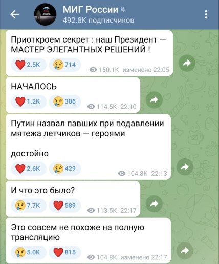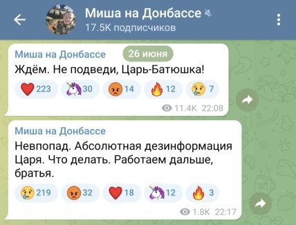 Как сообщалось ранее, выступление путина касалось мятежа российской ЧВК "Вагнера", которая 23 июня обвинила минобороны в нанесении ударов по местам их дислокации. 24 июня наемники практически без сопротивления смогли захватить Ростов и Воронеж, а затем двинулись на Москву.