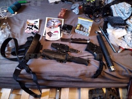 Отмечается, что членов группировки "Параграф-88" задержали в Московской и Рязанской областях и изъяли у них автомат Калашникова с патронами, резиновые дубинки, ножи, кастеты и наручники.