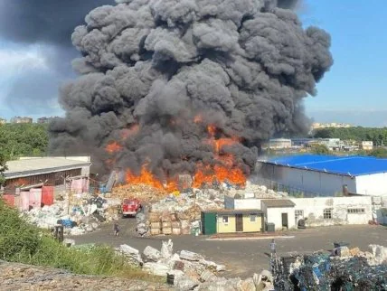 Горит макулатура, но огонь уже начал подступать к другим складам, которые расположены рядом. Причина пожара сейчас неизвестна, информации о постраадвших нет. Огромный столб черного дыма виден в разных районах города.