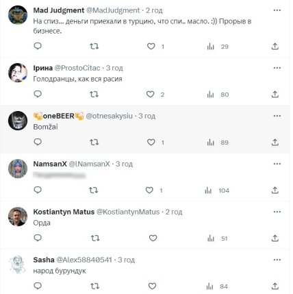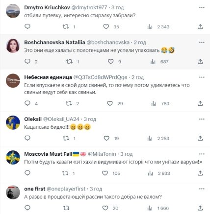 В сети высмеяли такое поведение россиян и в шутку предложили туркам поблагодарить их за то, что не украли унитазы и стиральные машинки, как в Украине. Пользователи сети сравнили россиян с животными, которые думают только о том, как бы поесть и при этом бесплатно.