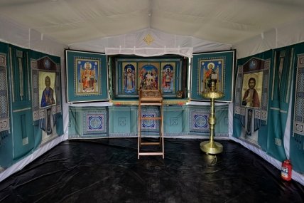 "Развернул, быстренько надул, послужил, закрылся и уехал. Если с учетом два человека (собирают) и все иконы развешать, до 10 минут можно ее развернуть, накачать. Складывать чуть побольше, минут 15", — рассказал российским пропагандистам иерей Борис Гришин.
