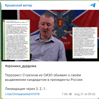Ликвидация через 3... 2... 1...: терорист гиркин хочет стать президентом россии, в сети начали отсчет