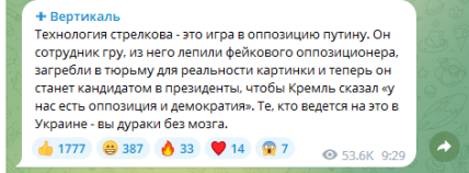 "Наш президент чрезвычайно доверчивый человек, его 8 лет водили за нос вместе и по отдельности Обама, Трамп, Макрон, Меркель, Порошенко и Зеленский. Водили в Минске и в нормандском формате, в Стамбуле и много еще где. Со своей стороны могу заметить: начиная с 2014 года, никогда не называл дорогими и уважаемыми партнёрами тех лиц, которые водили за нос действующего президента, я, наоборот, не верил никогда им ни на грош", — пишет террорист.