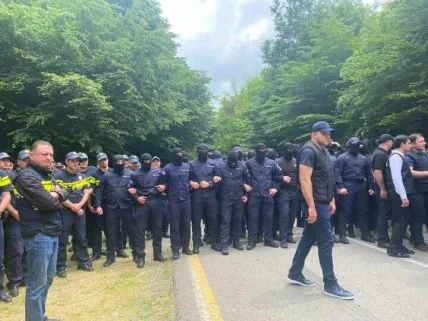 Как сообщает грузинская служба "Радио свобода", протесты проходят возле отеля Kvareli Lake Resort с 11 часов утра по местному времени (10:00 по Киеву).