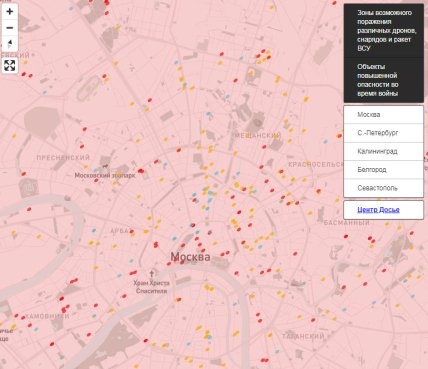 Центр также составил карту "наиболее опасных мест", на которой нансены объекты, найденные в списках. При этом расследователи уверены, что все эти открытые данные давно известны украинским военным, а мирным жителям в рф они помогут лучше оценивать риски.